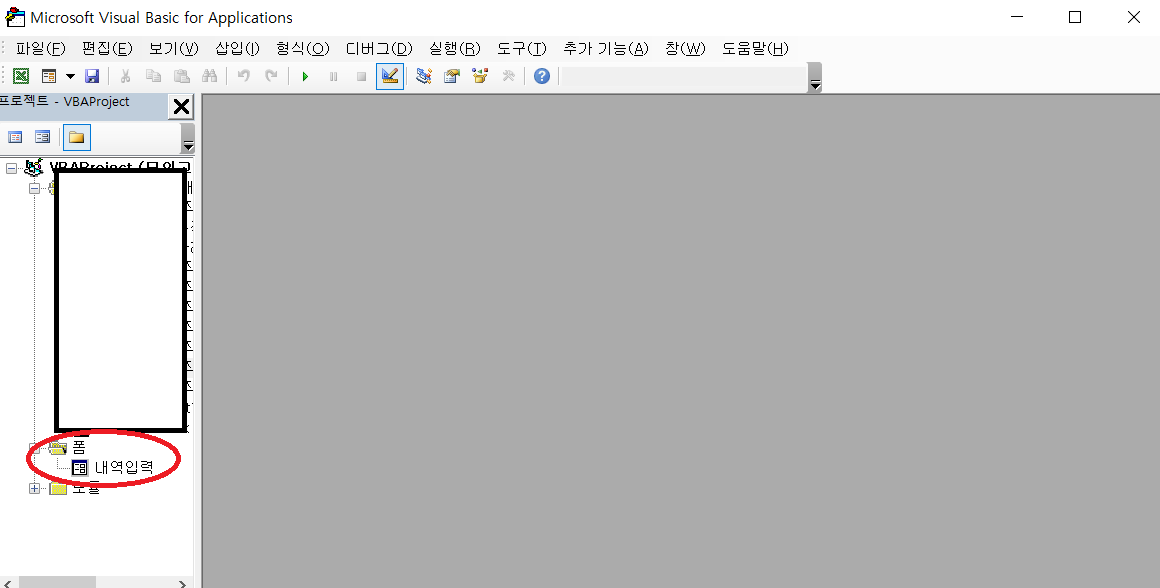 혹은 키보드 ALT + F11 을 눌러도 된다.